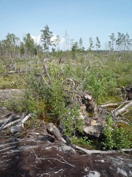 黒焦げになった木の横で、新たな木が育っていたり、コケが生えていたり。