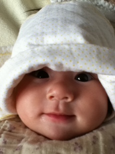 ふざけてハンカチを被せたら、プックリしたほっぺが目立って面白い顔~。