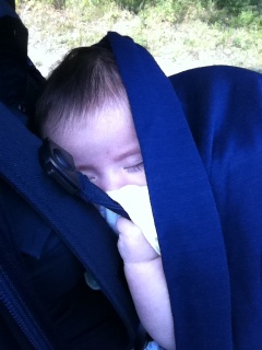 そして本日はベビーカーではなく、抱っこヒモで出かけました。