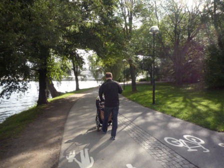 待ち合わせ時間に遅れ気味だったために早足でベビーカーを押していたけど、