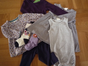 トップス2着、くつ下2足、ボディ2着、ズボン1着。